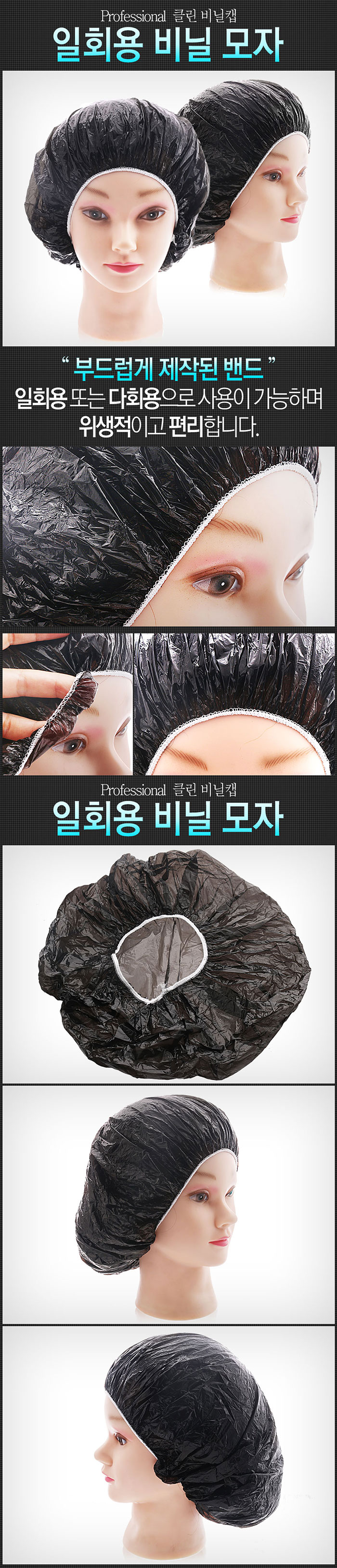 [미용잡화] 진성 비닐캡 - 블랙(비닐모자) 1묶음(10장)