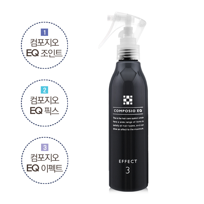 | - 컴포지오 EQ 픽스 시술 후, 헹굽니다. - 타올 드라이 후 모발 중간~끝 부분에 적량을 도포하여 마사지 하듯 흡수시켜 주십시오. ※ 주의 : 두피에 묻지 않게 도포 |