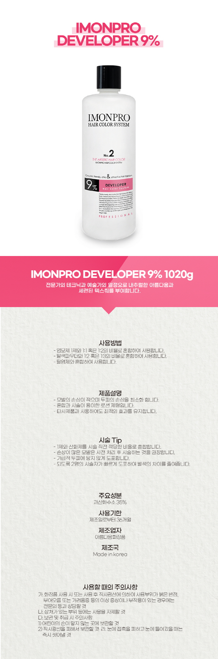 | [아름다운화장품] [아름다운] 아이몬프로 디벨로퍼 산화제 9% 1020g | |