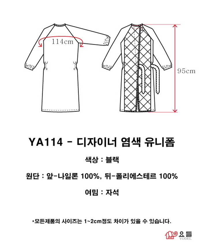 | [요들] [요들가운] 요들 디자이너 염색 유니폼 YA114 블랙 | |