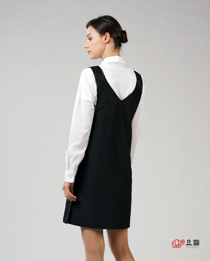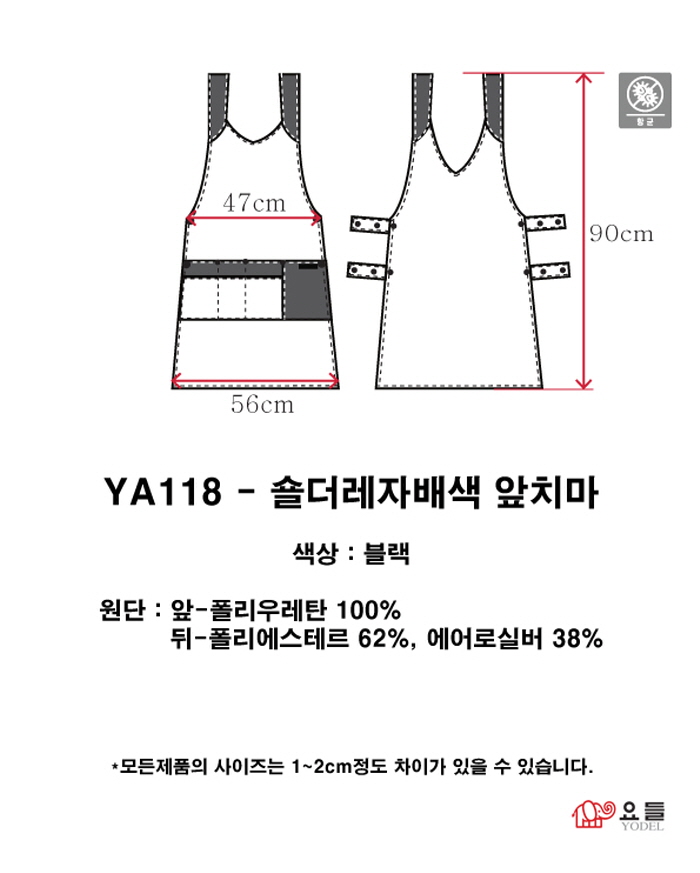 | [요들] [요들가운] 요들 숄더 레자 배색 앞치마 YA118 블랙 | |