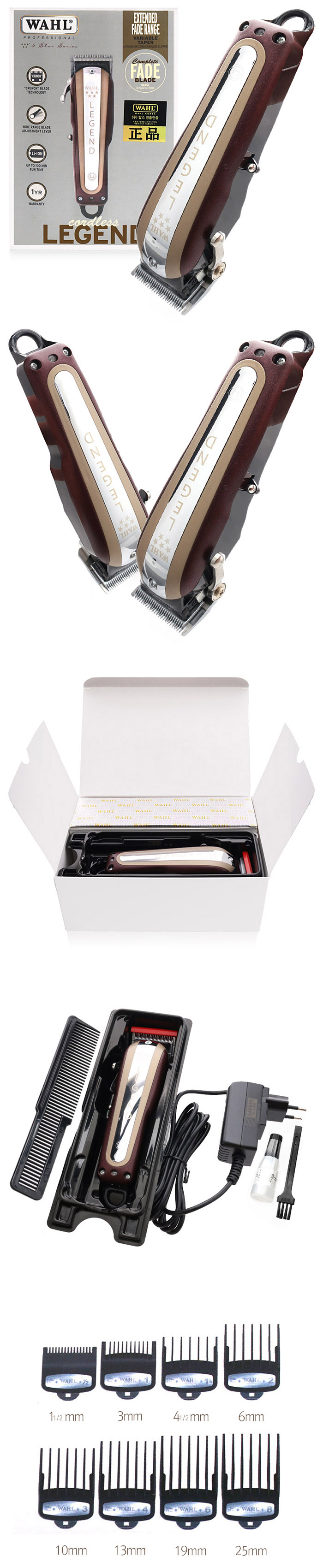 | 100년의 역사, 100년의 기업 전세계인의 사랑 받는 전통의 기업 WAHL 1919년 세계최초의 전자기식 헤어 클리퍼인 'Model 66'으로 부터 시작된 WAHL의 전통과 역사는 1911년 Sterling 고교 2년생이던 설립자 Leo.J.Wahl의 전가기 모터식 클리퍼의 발명을 모티브로 하고 있습니다. '강력하지만 조용한' 왈 만의 고유한 특성을 유지하면서도 지속적인 혁신을 멈추지 않는 지난 100년의 변화속에서 오직 사용자와 헤어에 집중한 경험과 기술력은 현재 미국과 영국, 독일 등 5개국 6개의 직영공장에서 철저한 관리하에 실현되어 전세계 165개국 이상의 전문 미용인의 선택으로 이어지고 있습니다. ■ 일반날의 40배 견고한 크롬날 장착 - 왈 사의 감점인 날의 견고함은 기존의 클리퍼의 날보다 40배 이상의 견고함을 갖고 있어 날의 수명도 오래갑니다. ■ 안전을 생각한 블레이드 가드 - 불의의 사고를 예방하기 위하여 <블레이드 가드>를 씌운뒤 안전하게 보관이 가능합니다. ■ 자유로운 시술이 가능한 유/무선 코드 - 시술시 선이 엉키는 불편함이 없는 무선 사용이 가능한 바리깡으로 한번 충전시 최대 90분 사용이 가능합니다. |