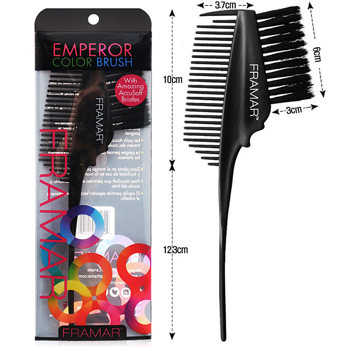 | 제품의 특징 - 양면 칼라 브러쉬와 빗 - 브러쉬로 빠르게 컬러를 도포하고 빗을 사용하여 모발을 분할 한다 - 테이퍼형 핸들은 컬러 적용 시 헤어 분할 및 섹션을 나누는데 효과적 - 그립감과 손목 사용 편의성을 높이기 위한 평평한 꼬리부분 - FRAMAR의 유명한 Acusoft의 솔은 테이퍼가공되어 있어 모발에 빠르고 균등하게 색을 도포 할 수 있습니다. |