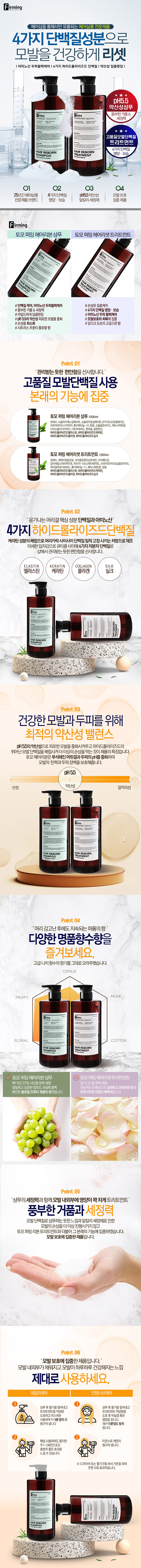 | 제품의 특징 - 검증된 하이드롤라이즈드엘라스틴, 케라틴, 콜라겐, 실크의 성분으로 모발의 내외부를 채워주고 큐티클을 보호하여 모발을 윤기있고 건강하게 리셋합니다. |