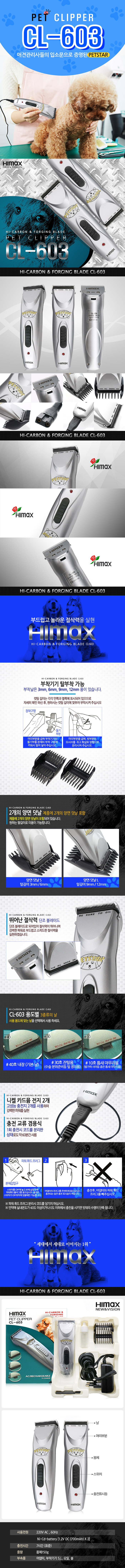 | [하이막스-히타치] [HIMAX] 하이막스 애견 바리깡 CL-603 | |