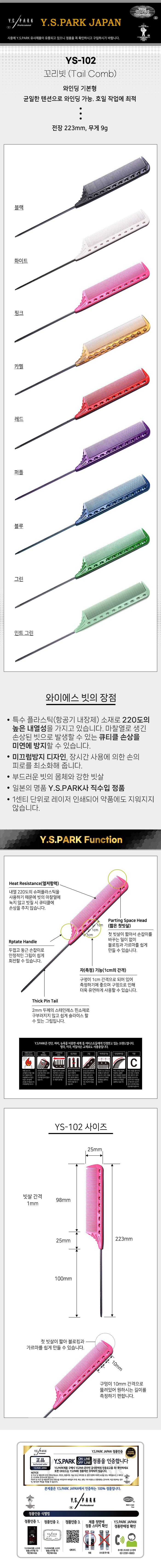 | [Y.S.PARK] [Y.S.PARK] 와이에스박 철 꼬리빗 (Tail Combs) YS-102 (종합 선택) | |