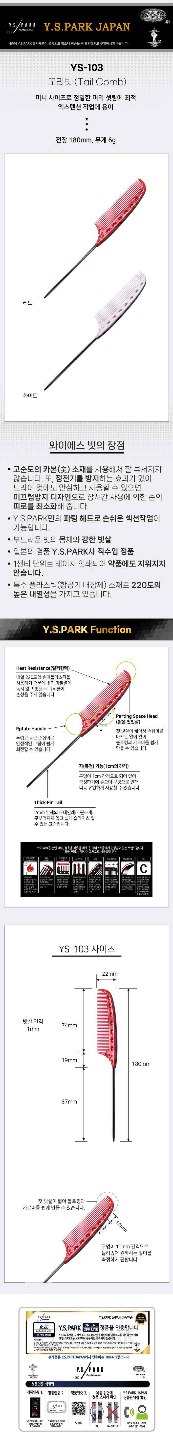 | [Y.S.PARK] [Y.S.PARK] 와이에스박 철 꼬리빗 (Tail Combs) YS-103 (종합 선택) | |