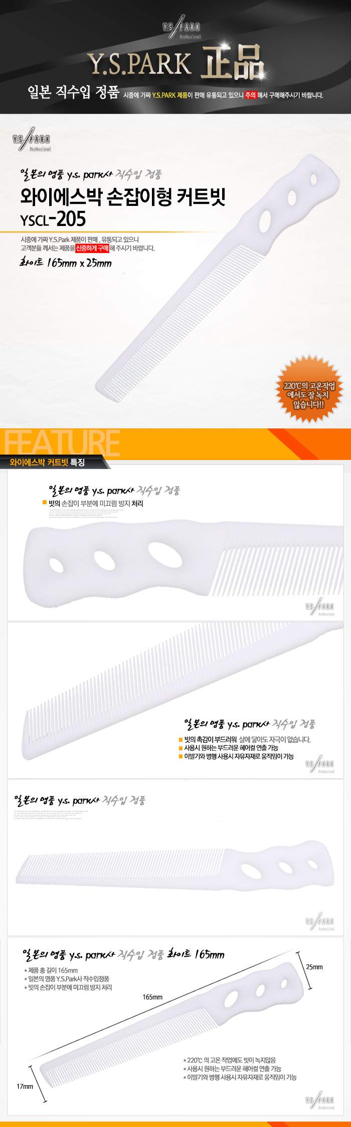 | [Y.S.PARK] [Y.S.PARK] 와이에스박 손잡이형 커트빗 (B2 Combs) YS-205 (종합 선택) | |