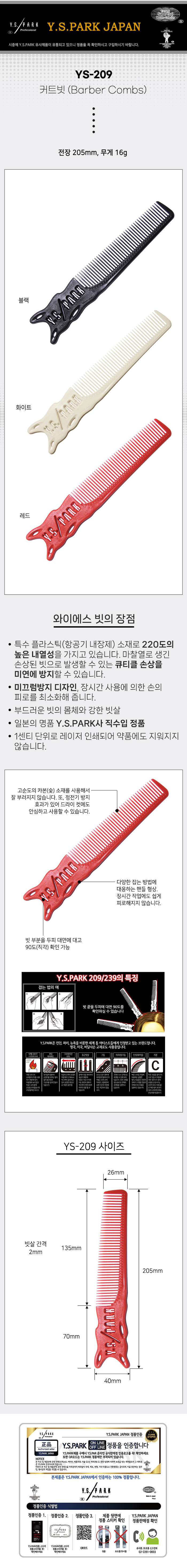 | [Y.S.PARK] [Y.S.PARK] 와이에스박 손잡이형 커트빗 (B2 Combs) YS-209 (종합 선택) | |