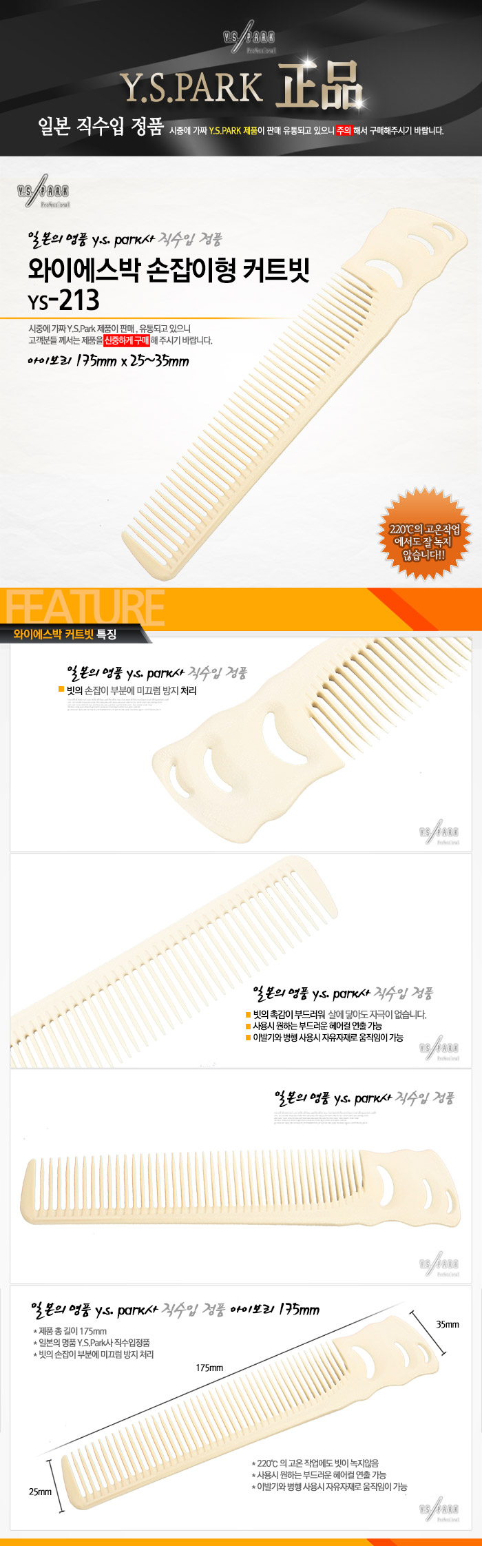 | [Y.S.PARK] [Y.S.PARK] 와이에스박 손잡이형 커트빗 (B2 Combs) YS-213 (종합 선택) | |