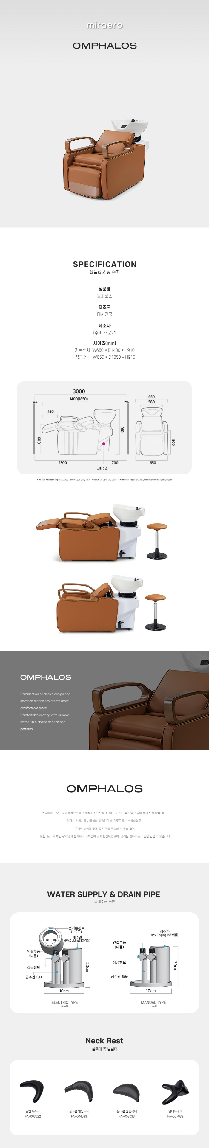 | 제품의 특징 - 액츄에이터 모터 채용으로 소음을 최소화하였고 도기 폭이 넓고 깊어 물 튀김을 방지합니다. - 원터치 스위치로 시술자의 발 피로도를 최소화하고 고객에 맞게 목 각도 조절이 가능합니다. - 도기의 후방 쪽이 낮게 설계되어 세척성이 향상되었고 앉아서도 시술이 가능합니다. 배송 운임 안내