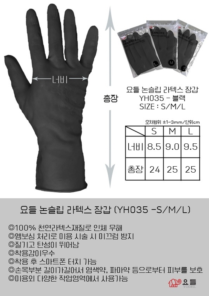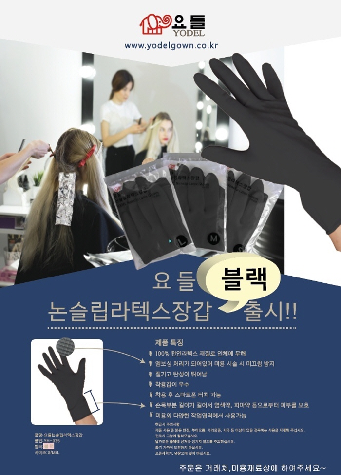 | [요들] [요들] 스마트 논슬립 라텍스 블랙 미용장갑(대/중/소) YH-035 1봉 (낱개 단위) | |