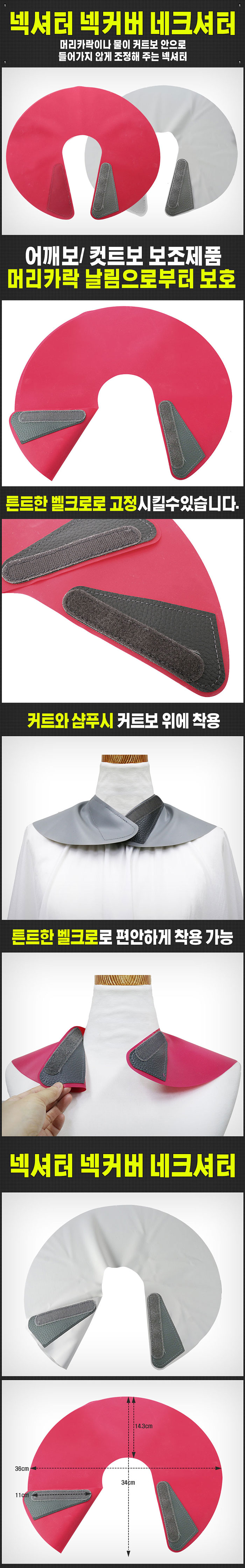 | 제품의 특징 - 커트와 샴푸시 커트보 위에 착용 - 머리카락이이나 물이 커트보 안으로 들어가지 않게 조정해 주는 넥셔터 - 목이 답답하지 아않게 조이지 않아 편안하게 착용 가능합니다. |