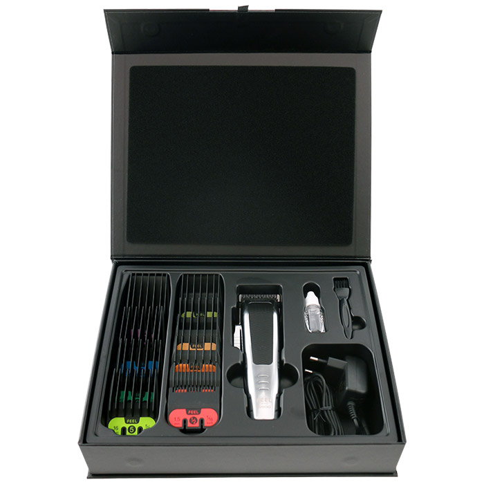 | 제품의 특징 - 날의 원터치 교체 - 7000RPM의 강력한 모터 - 241g의 가벼운 무게 - 5단계의 날조절과 10개의 가이드덧날로 원하는 길이 조절 가능 - 저소음, 저진동 바리깡 - 7,200RPM |