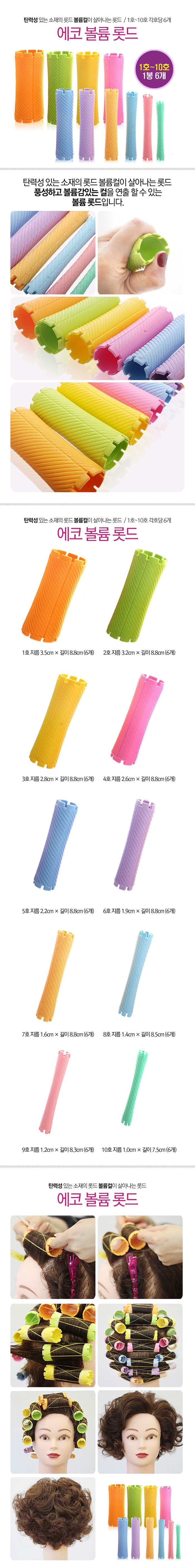 | 제품의 특징 - 풍성하고 볼륨감 있는 컬을 연출할수 있는 롯드 - 에코 볼륨 롯드 사용시 아름다운 웨이브 컬을 만들수 있습니다. - 매끄러운 질감과 미끄러지지 않는 마감으로 사용하기 매우 편리합니다. |