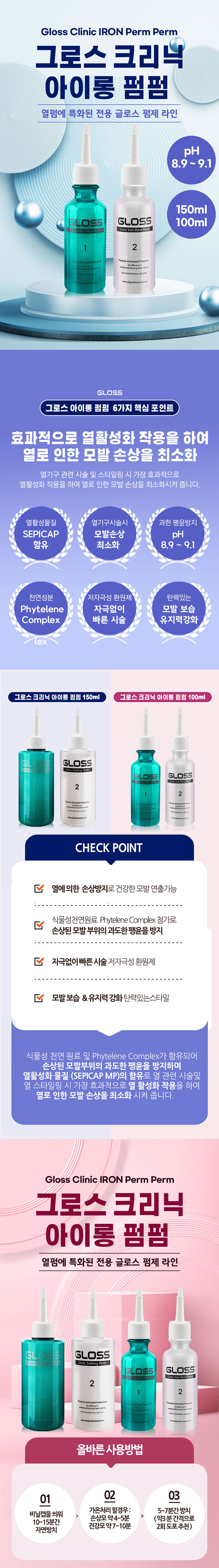 | 제품특징 -열활성 물질(SEPICAP MP)함유 -식물성 천연 원료 및 Phytelene Complex가 함유되어 손상된 모발부위의 과도한 팽윤을 방지 -저자극성 환원제 사용 -빠른 시술효과 |