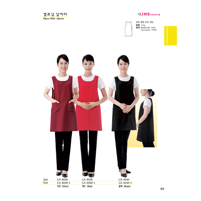 [라인유니폼] 옆트임 앞치마 일반