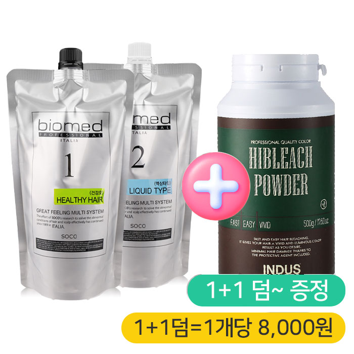 [1+1 덤~ 증정 = 1개당 8.000원] 바이오메드 매직펌제 1개 + 인더스 블리치 파우더(탈색제) 500g * 1개 증정 [pH:9.0~9.4][소박스7개 / 대박스28개] 낱개 구매가능