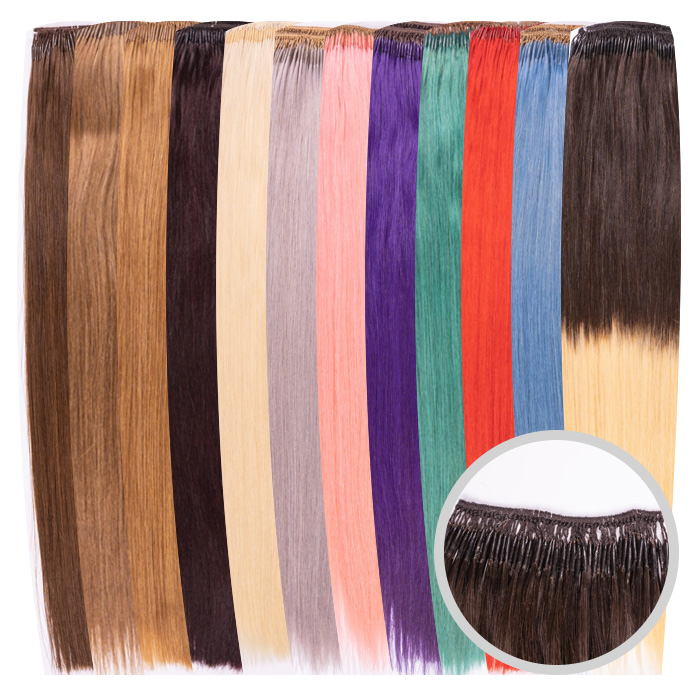 [헤어피스] 하나비 실키 붙임머리 헤어피스18인치(인모100%) 실리콘작업완료 200피스 (종합)
