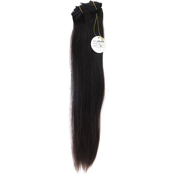 [헤어피스] 하나비 실키 붙임머리 똑딱이 헤어피스18인치(인모100%) 12묶음 1셋트 (1번 블랙)
