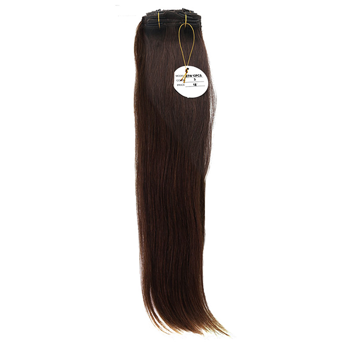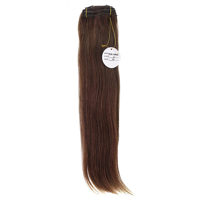 [헤어피스] 하나비 실키 붙임머리 똑딱이 헤어피스18인치(인모100%) 12묶음 1셋트 (4번 진한갈색)