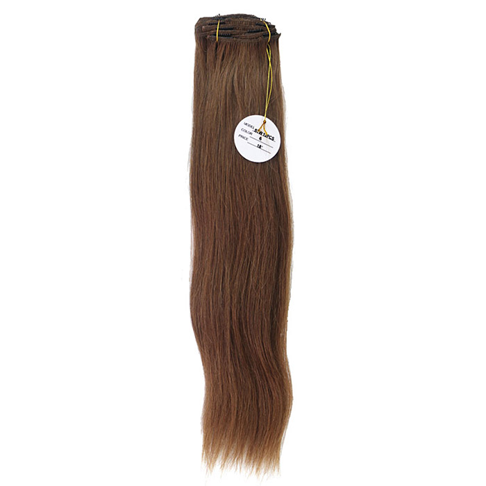 [헤어피스] 하나비 실키 붙임머리 똑딱이 헤어피스18인치(인모100%) 12묶음 1셋트 (6번 자연갈색)