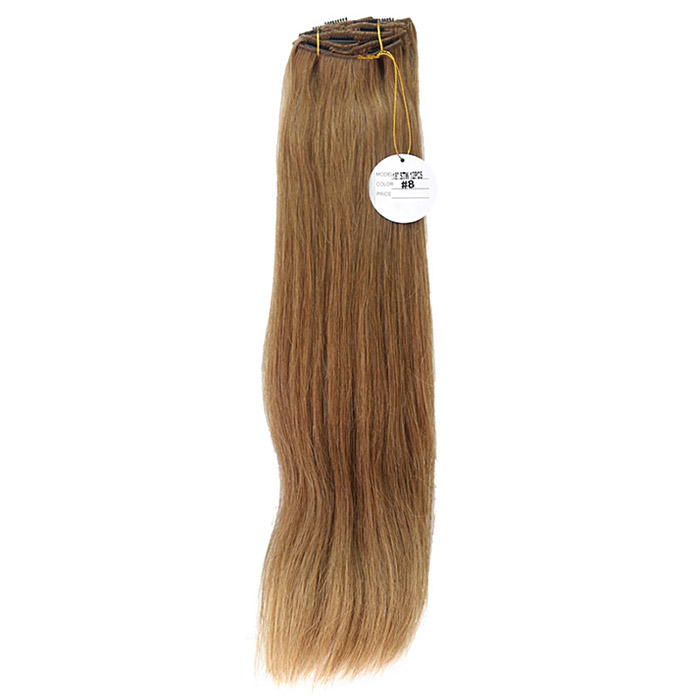 [헤어피스] 하나비 실키 붙임머리 똑딱이 헤어피스18인치(인모100%) 12묶음 1셋트 (8번 밝은갈색)