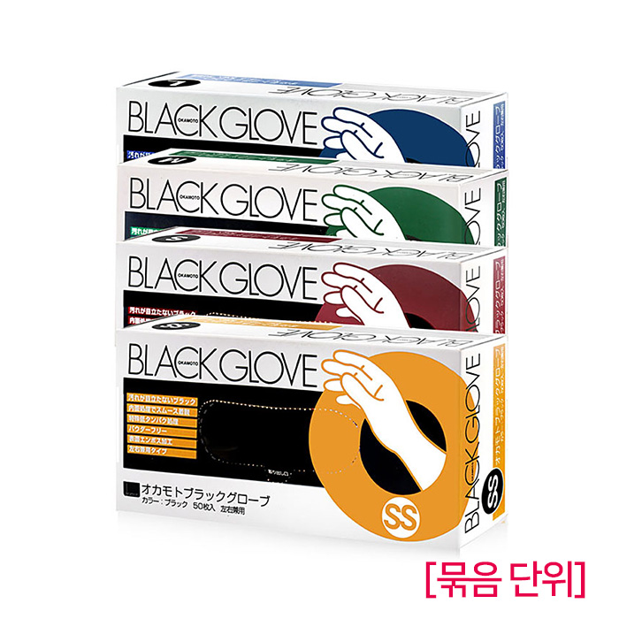 [오카모토] 오카모토 라텍스 미용장갑 블랙 (대,중,소,미니/선택) 낱개 50매 25쌍 = 1갑 (박스 단위판매)